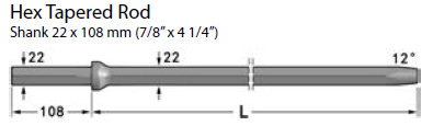 | Taper Tools 12 Degree, Hex Tapered Rod, Shank 22x 108mm | ||||
